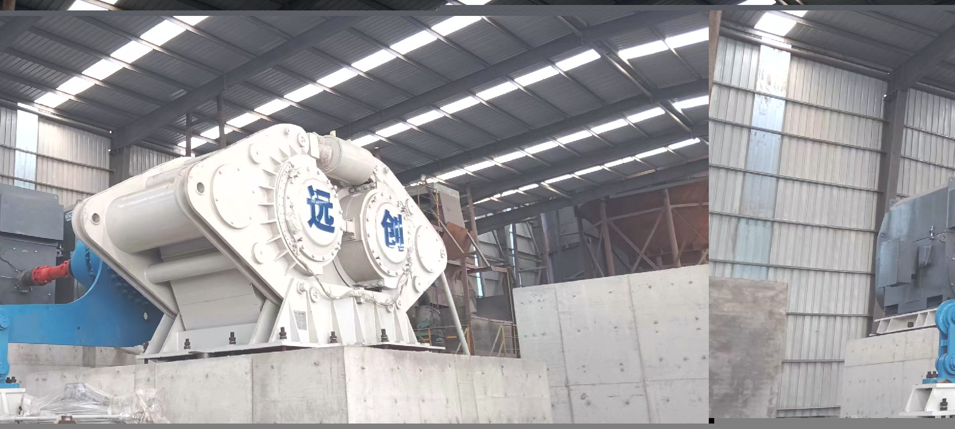 兩臺電機通過減速機帶動兩只磨輥相向轉(zhuǎn)動,管道及料倉里的物料在重力及物料間摩擦力的作用下被拉入輥隙間。液壓系統(tǒng)通過油缸、軸承座、軸承向輥子及棍子間的物料施加壓力,使物料得以粉碎。被粉碎過的物料經(jīng)輸送設(shè)備送入分級設(shè)備,經(jīng)分級后,小于一定粒徑的物料被送入后續(xù)工段。粗顆粒返回高壓輥磨機重新擠壓。